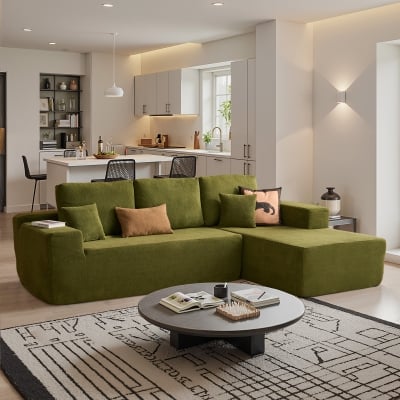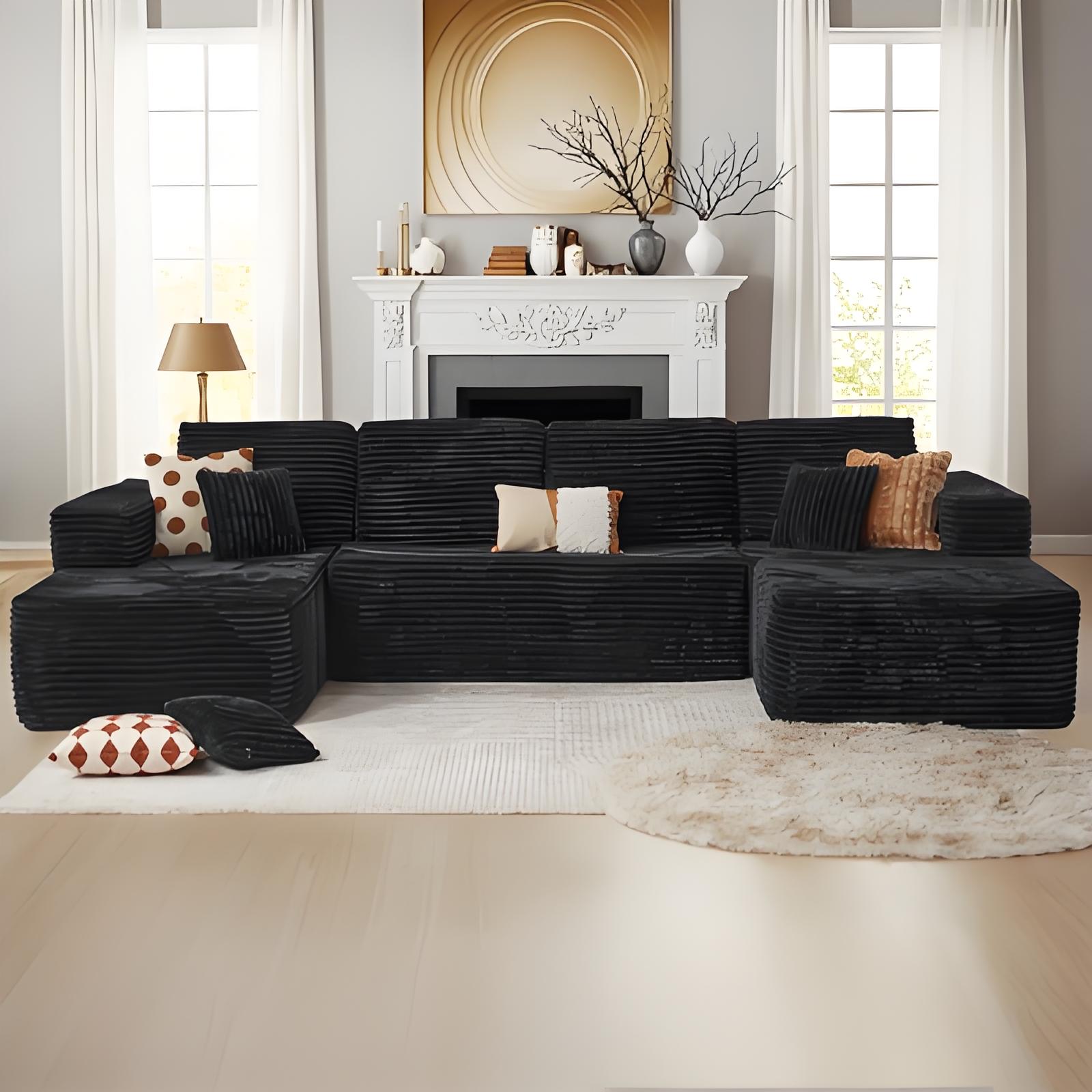 Feet Living 104" L-Shape Modular Couch with Chaise,Cloud Velvet Fabric,No Assembly Required